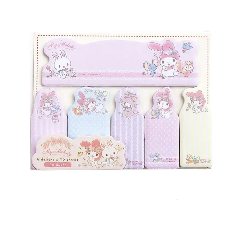 Bloc de notas adhesivas de papel con 90 marcapáginas decoradas cada uno Contiene 6 diseños distintos con 15 notas cada diseño= 90 total. Seis variantes a elegir. Medidas del empaque: 11 x 8.5 cm